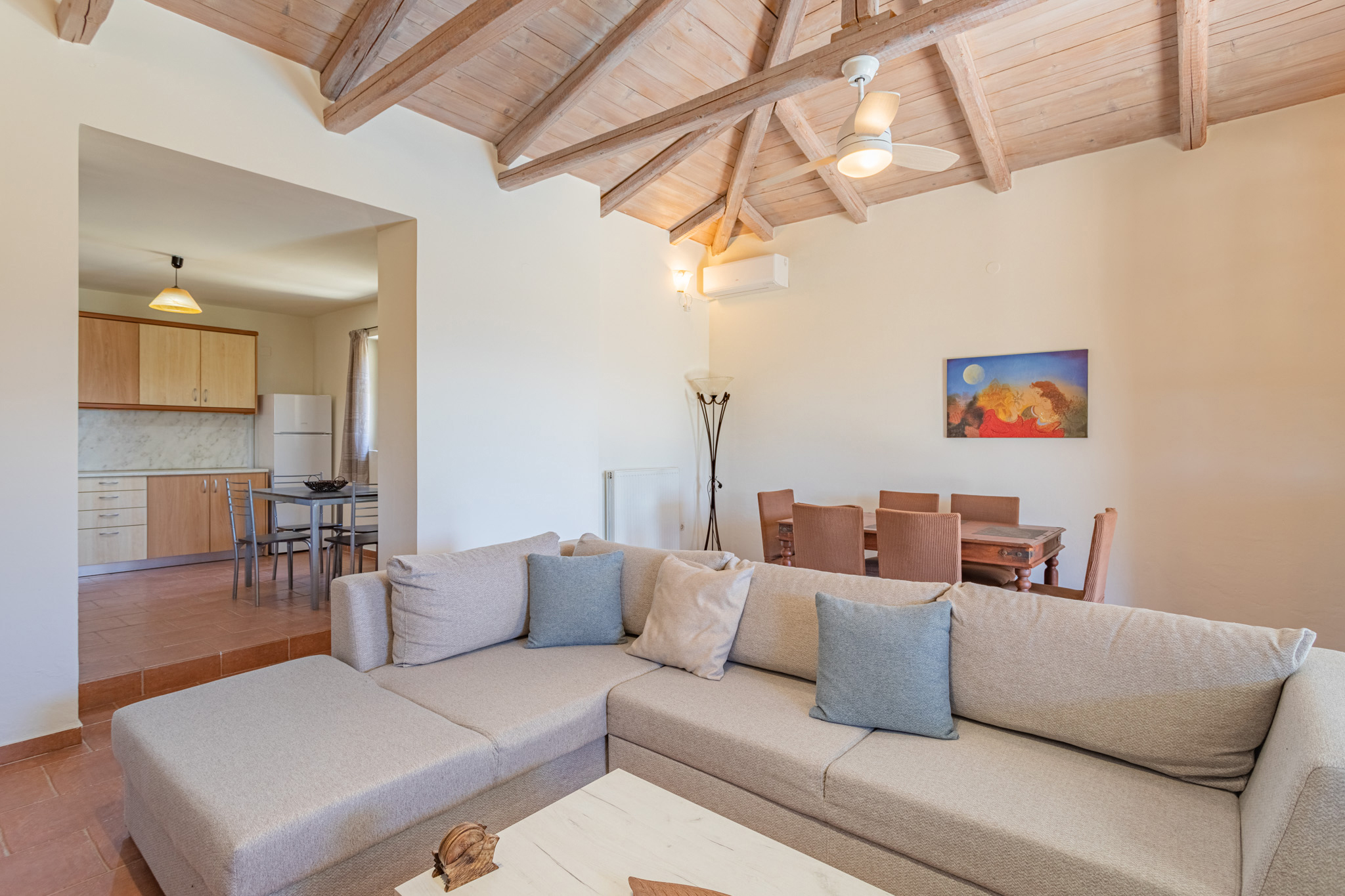 Elia Villas are tastefully furnished throughout with a spacious ground floor open plan living area with patio doors leading out to a large balcony, from which you will find your private swimming pool. Our kitchens have been set up with all the equipment you will need to make our villas feel like a home from home. With two bedrooms, one double and one twin and if required, two extra sofa beds in the lounge area, our villas are ideal for your family stay. Each villa has an air conditioner in the living room. The terraces are complete with sun loungers and umbrellas for lazing around the pool.